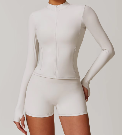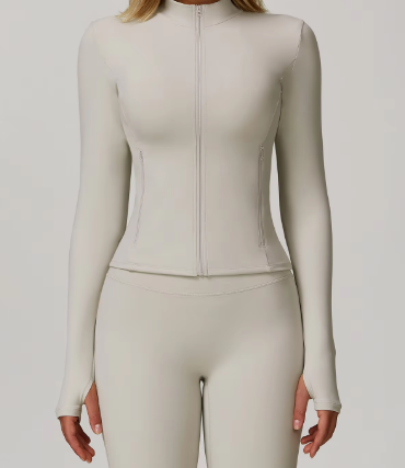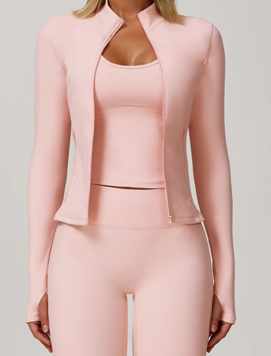Áo khoác tập gym nữ dáng ôm với thiết kế hiện đại, tôn dáng và đầy nữ tính.