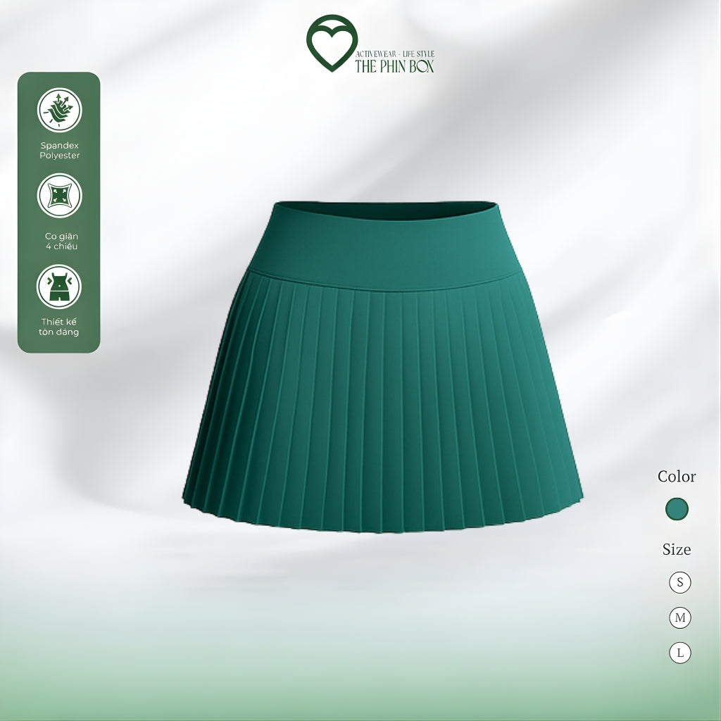 • 🏆 THE PHIN BOX SET ACTIVEWEAR TANK TOP CHÂN VÁY XẾP LY XANH RÊU TBA11 - Áo tank top và chân váy xếp ly màu xanh rêu, thiết kế co giãn thoải mái, tôn dáng lý tưởng cho tennis và pickleball.
